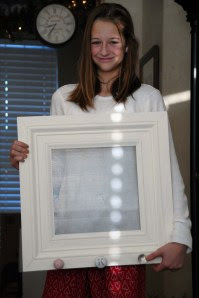 For Christmas my sister-in-law came over and we made this earring/jewelry board for her daughter Kaylani. It is simply molding that is crafted into a picture frame with mesh glued into